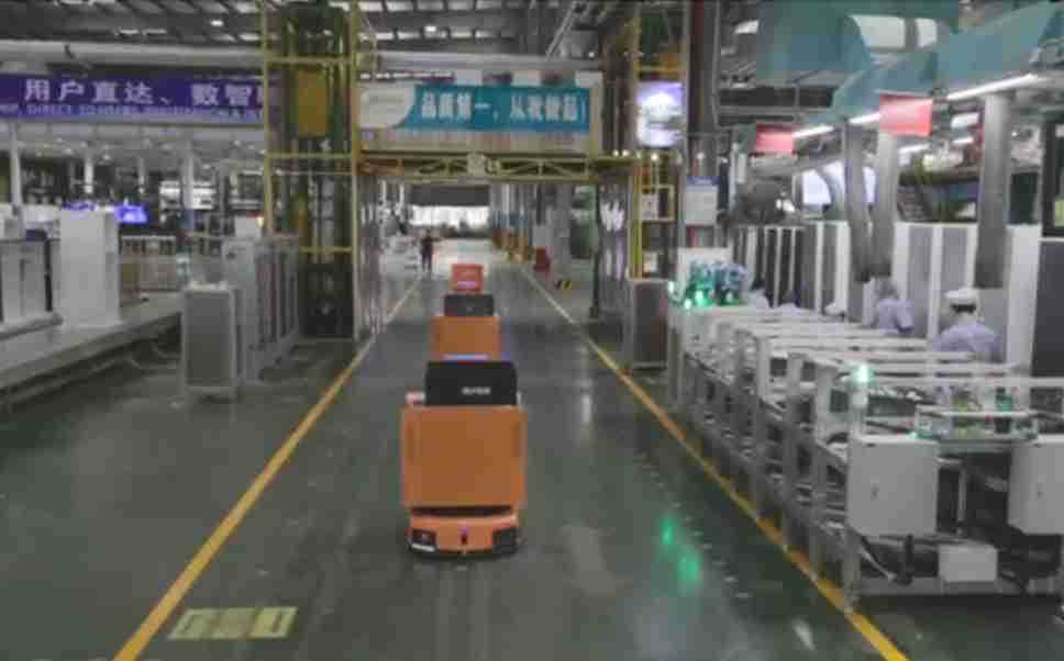 为车载冰箱物流配送打造的智能解决方案,,包含产中物流通过潜伏举升AMR搬运至线边,,,产后成品物流智能仓储,,,流程包含产中物流智能齐套入库,,,线边安灯叫料AMR智能配送至线边,,,成品入库、、出库,,,,通过无人堆高车机器人,,,,智能仓储管理替代人工作业管理,,,,实现更高存储、、更高效率、、、更具柔性化的解决方案。。。。